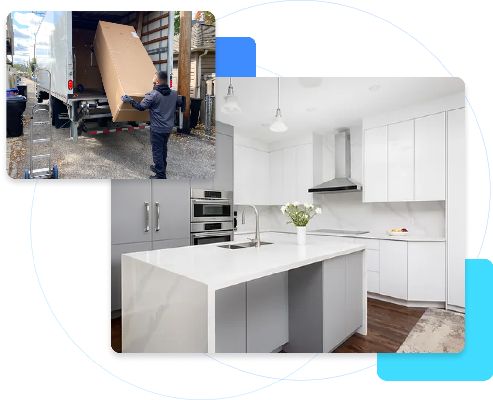 Once you place your order, we custom make your cabinets in our state-of-the-art facility according to your design & measurements. Once your cabinets are built, they are pre-assembled, wrapped, and delivered right to your front door or project site. You are ready for installation!